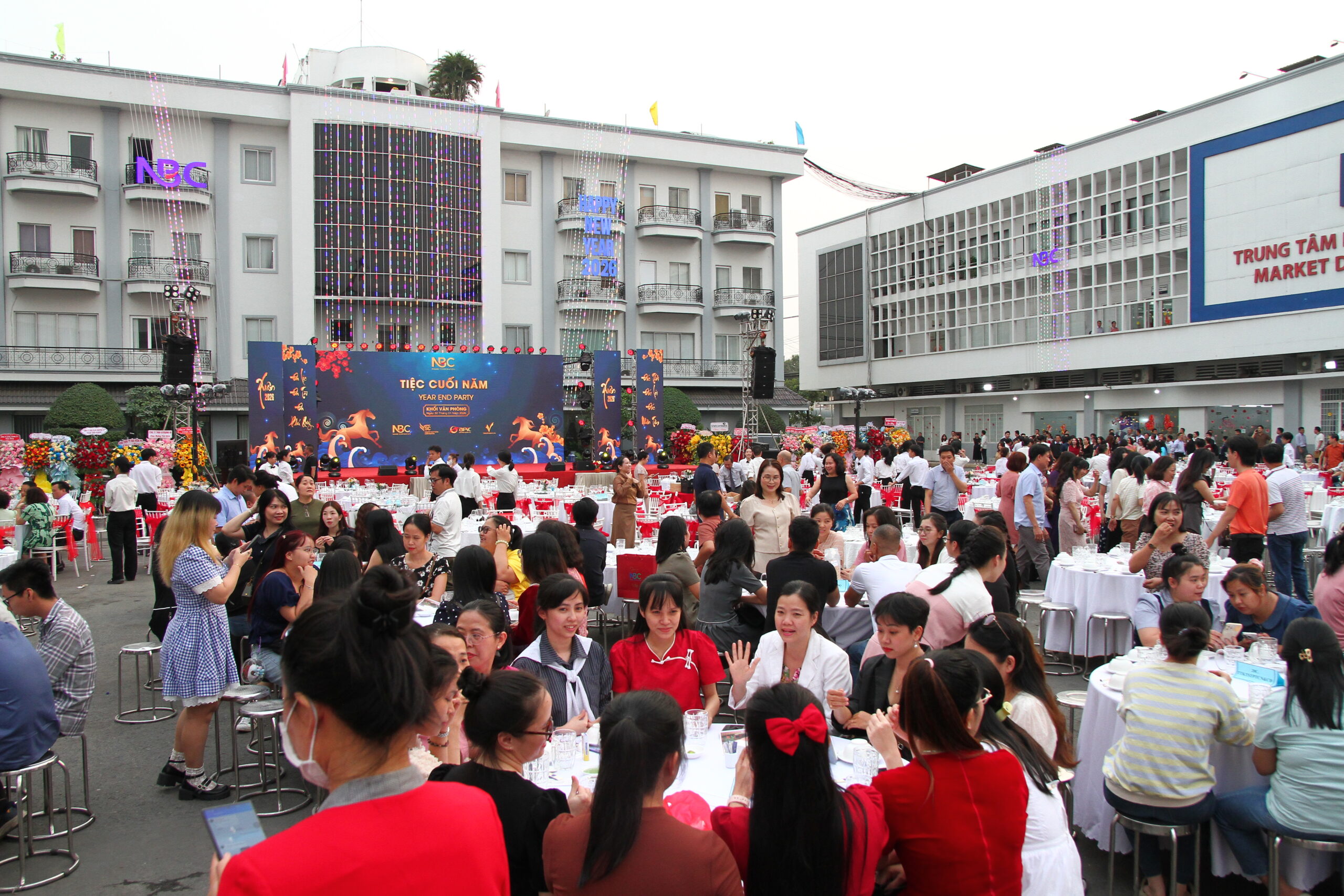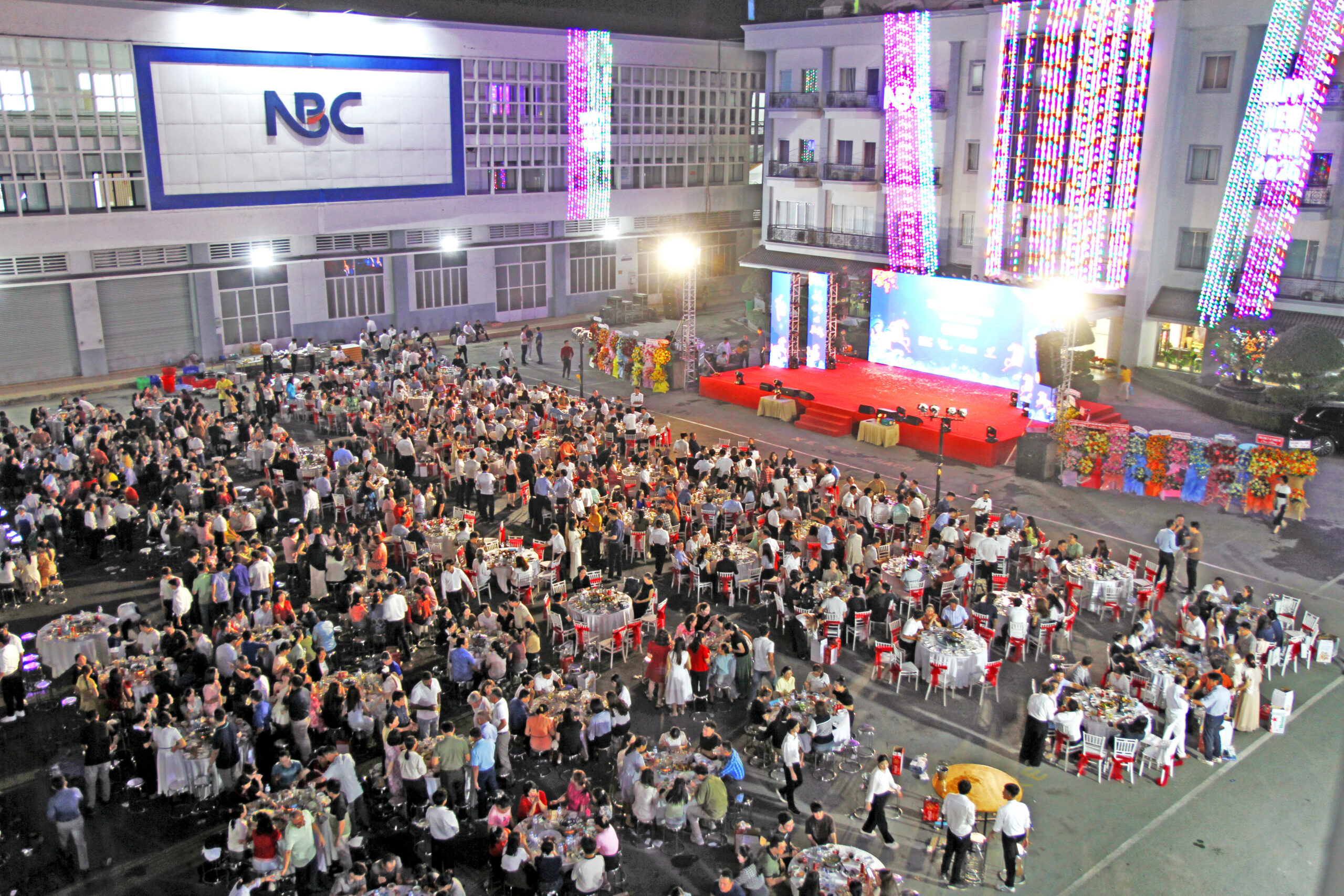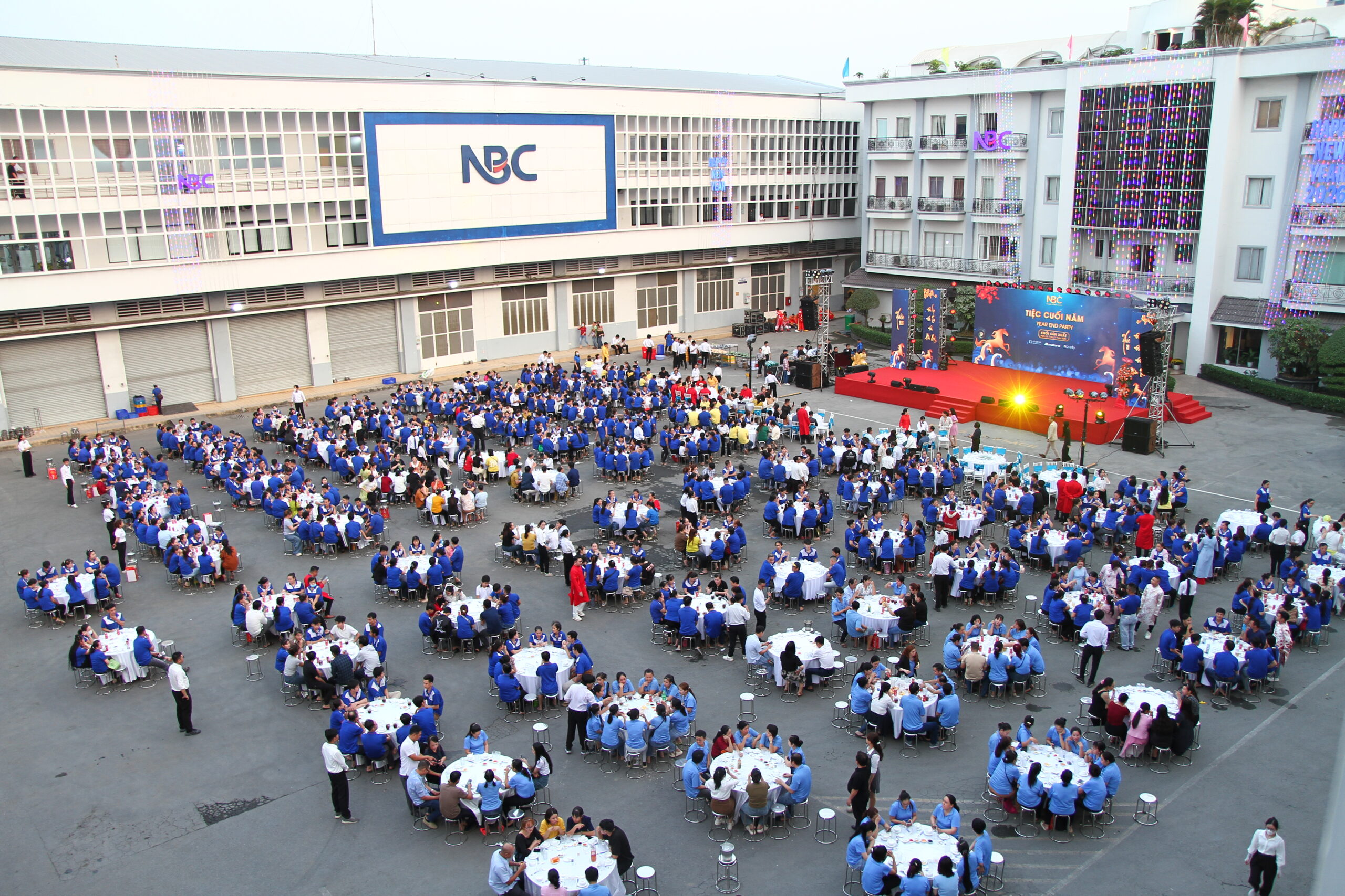 Tổng Công ty CP May Nhà Bè (NBC) đã tổ chức Tiệc Tất niên 2025 dành cho Khối Sản xuất và Khối Văn phòng của 4 hệ thống Tổng Công Ty: NBC – VSC – APIC – Vinatex Đà Nẵng, với sự tham dự của hơn 2.500 cán bộ, công nhân viên đến từ 4 hệ thống Tổng Công ty, Công ty con và Công ty liên kết tại khu vực TP.HCM. Chương trình được tổ chức trong hai ngày 28/01 & 30/01/2026, trong không khí ấm áp, thân tình và đầy ý nghĩa.
